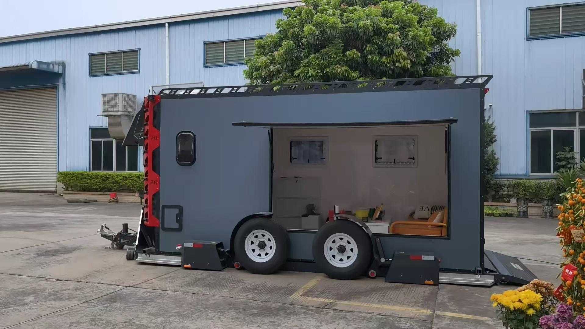 Instructus cum systematis electricis hydraulicis elevatis et operationis potestate remotae wireless, unum-clavem ditionis suggesti tollendi et panel explicandi caudam dat. Vehicula in sequor directe depellere possunt sine addito aggeres vel forklifts. Una persona perficere potest onerandas et exonerationes, efficacia operando valde amplificandas, aptando ad frequentes translationes missionum.