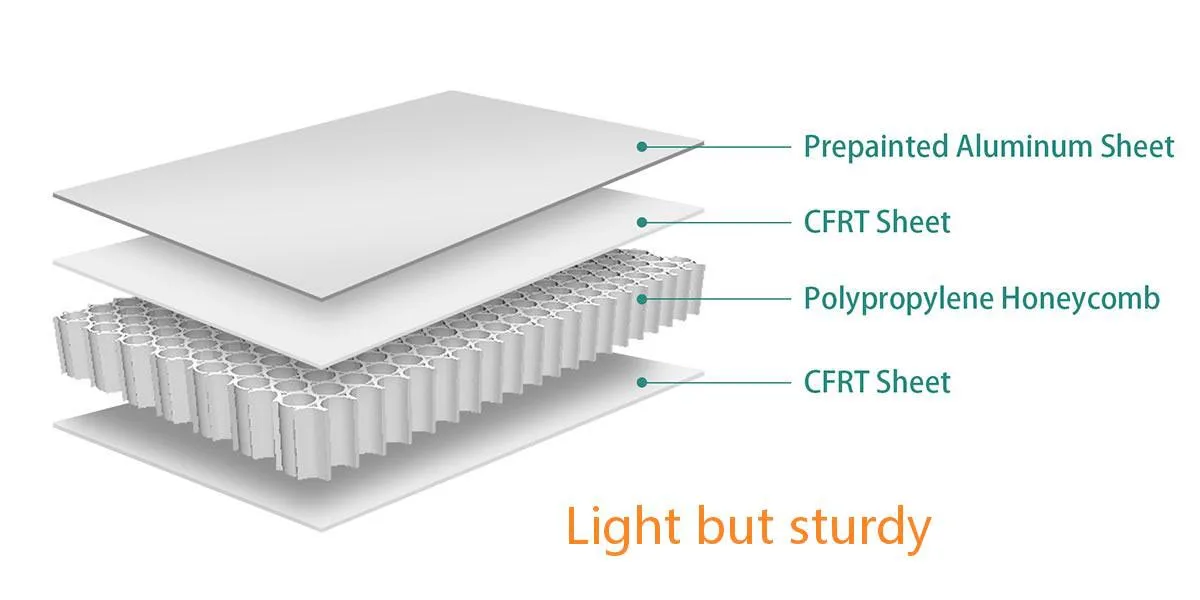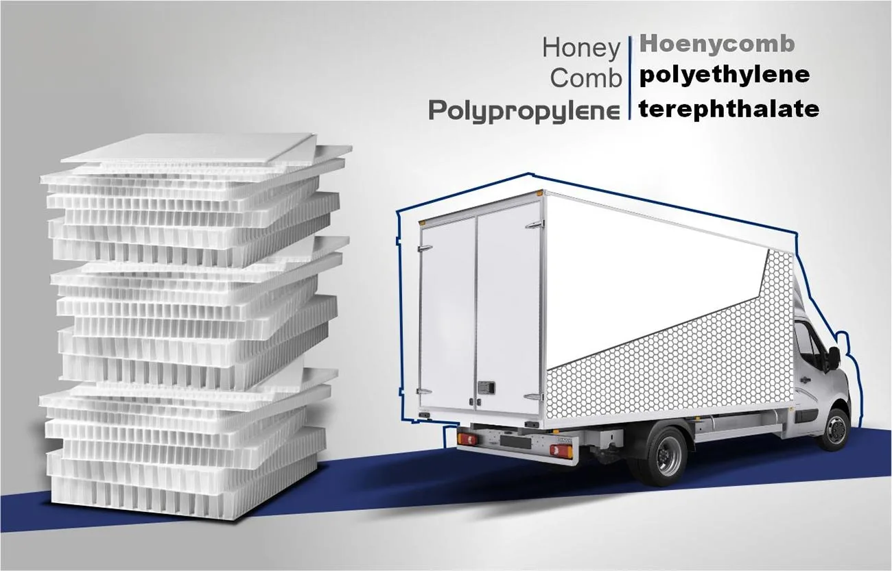 The honeycomb Core dry Truck Corpus est provectus logistics solutionem quae reponit traditionalem limae ferro muros cum summus perficientur sandwici compositionis structuram (Skin Sheet + Honeycomb Core + Skin Sheet).